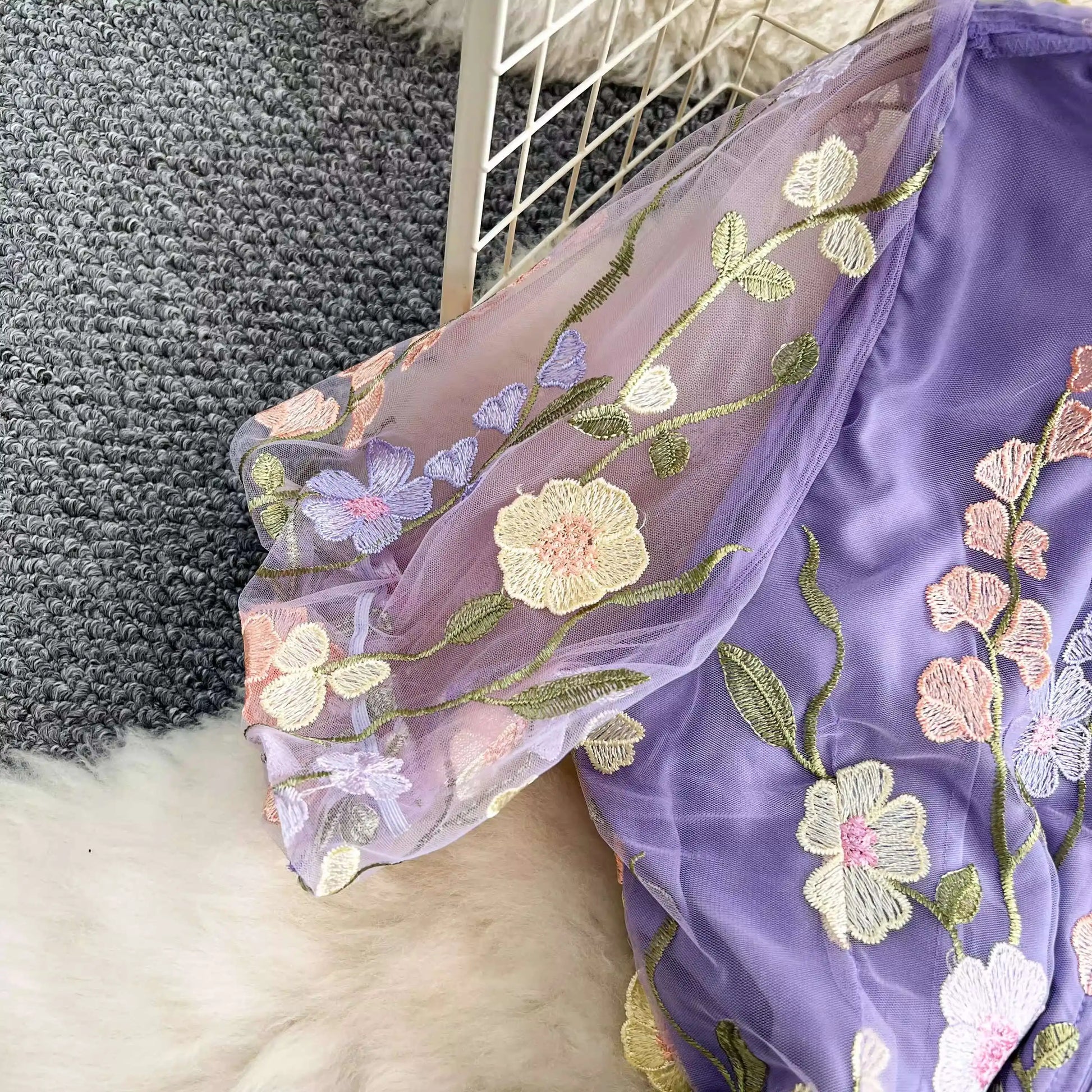 Stay vintage and romantic with this 3D flower dress. Features floral pattern, puff sleeves, and empire waistline — perfect for all seasons vintage style.