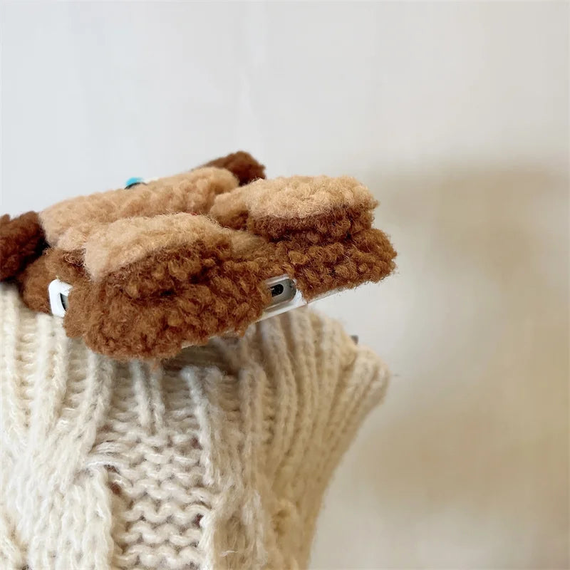 A Korean-style cute plush puppy case with furry lamb texture. Soft and fun design provides warmth and personality with full coverage protection.