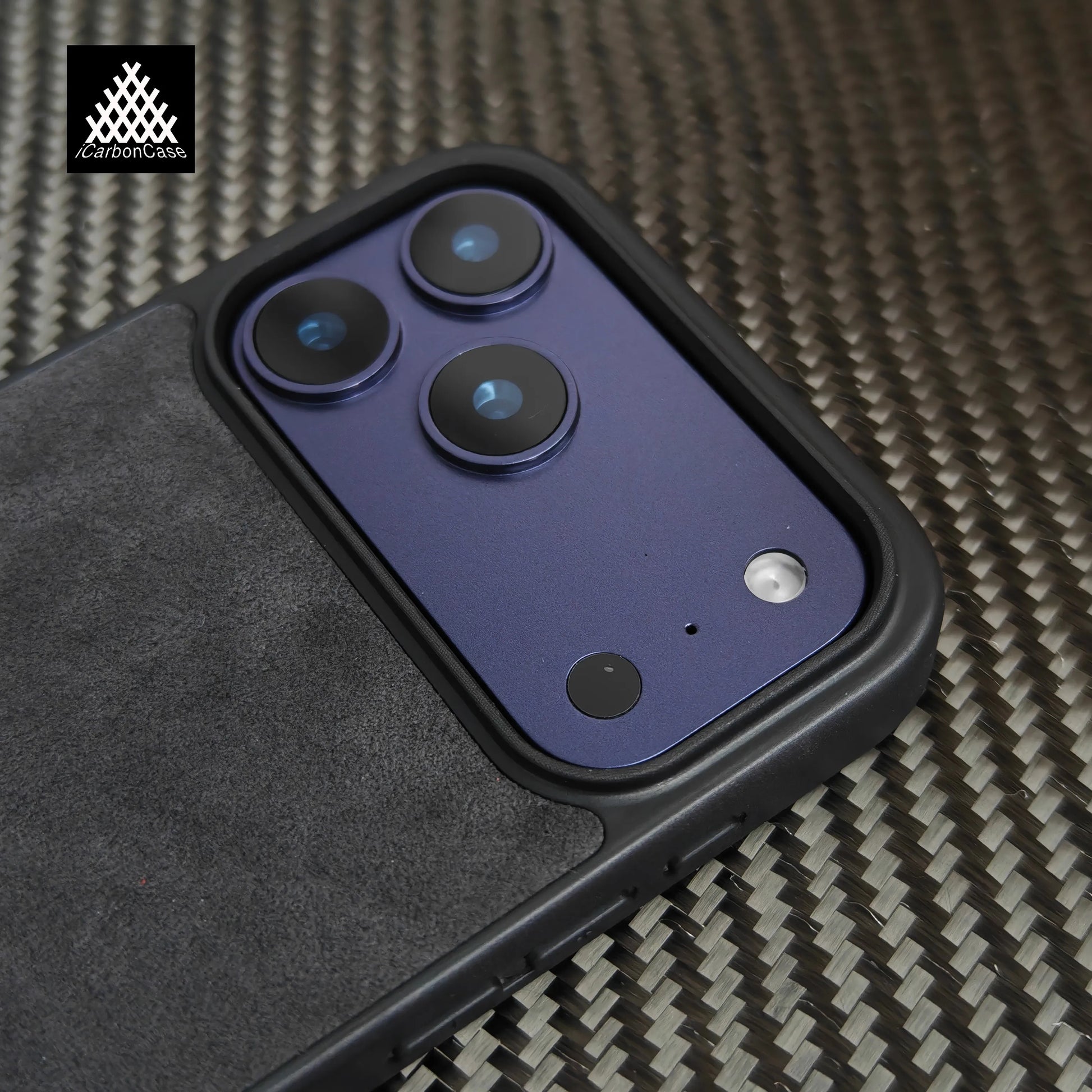 A genuine Italian Alcantara premium leather case with magnetic Magsafe support. Luxurious material provides superior feel and wireless charging compatibility.